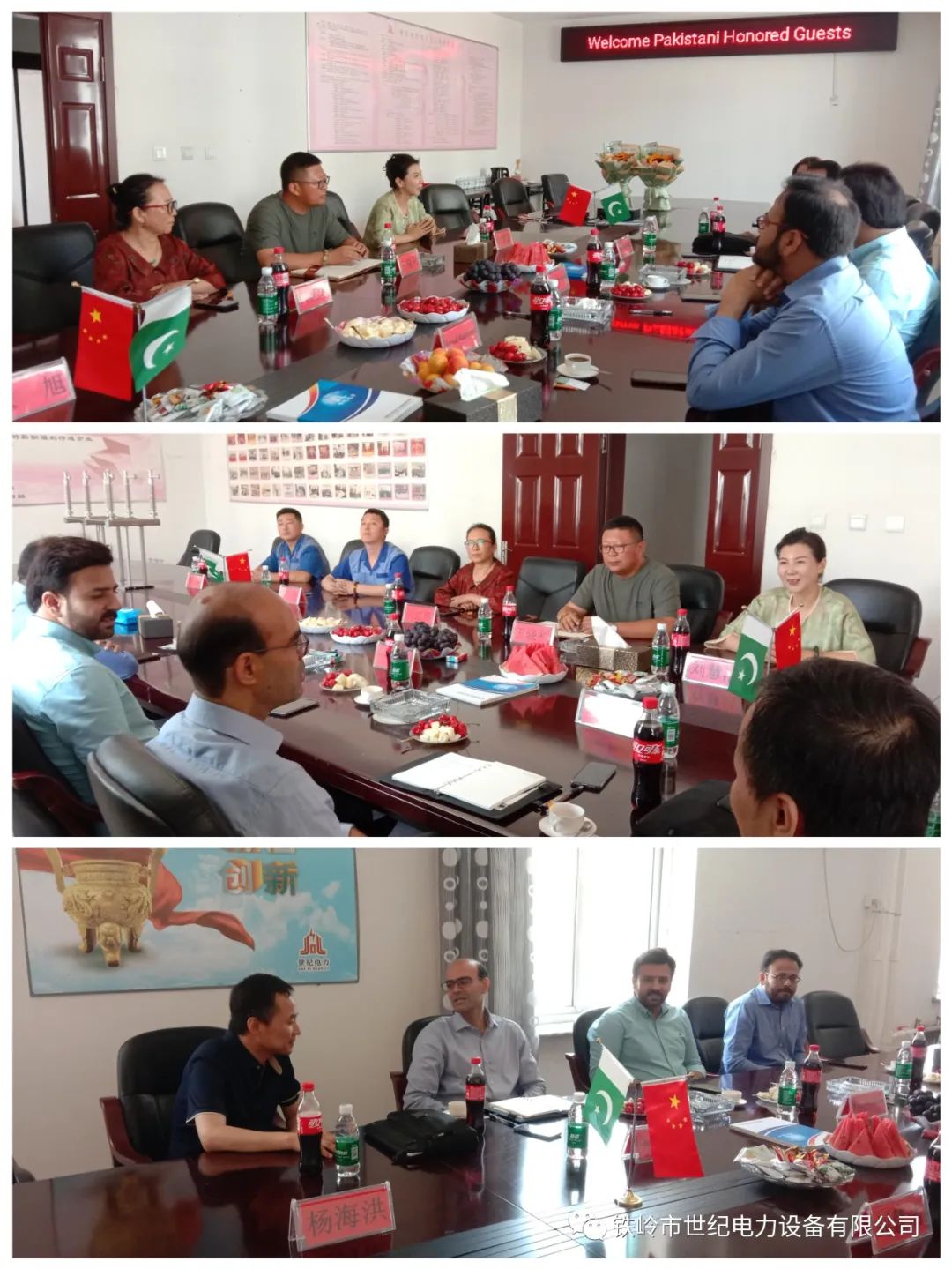 2023年7月6日,巴基斯坦EMCO公司運營總監Salem Rehman一行三人來到鐵嶺市世紀電力設備有限公司考察,公司總經理劉慧潔,副總經理閆紅煒、王曉利等企業高管對他們的到來表示熱烈歡迎,并進行了熱情的接待。